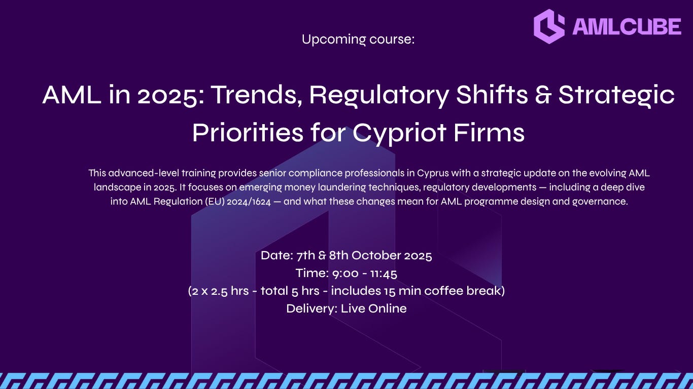I will be delivering a Live-Online Course for compliance professionals in Cyprus with a strategic updated on the evolving AML landscape and upcoming regulatory changes.